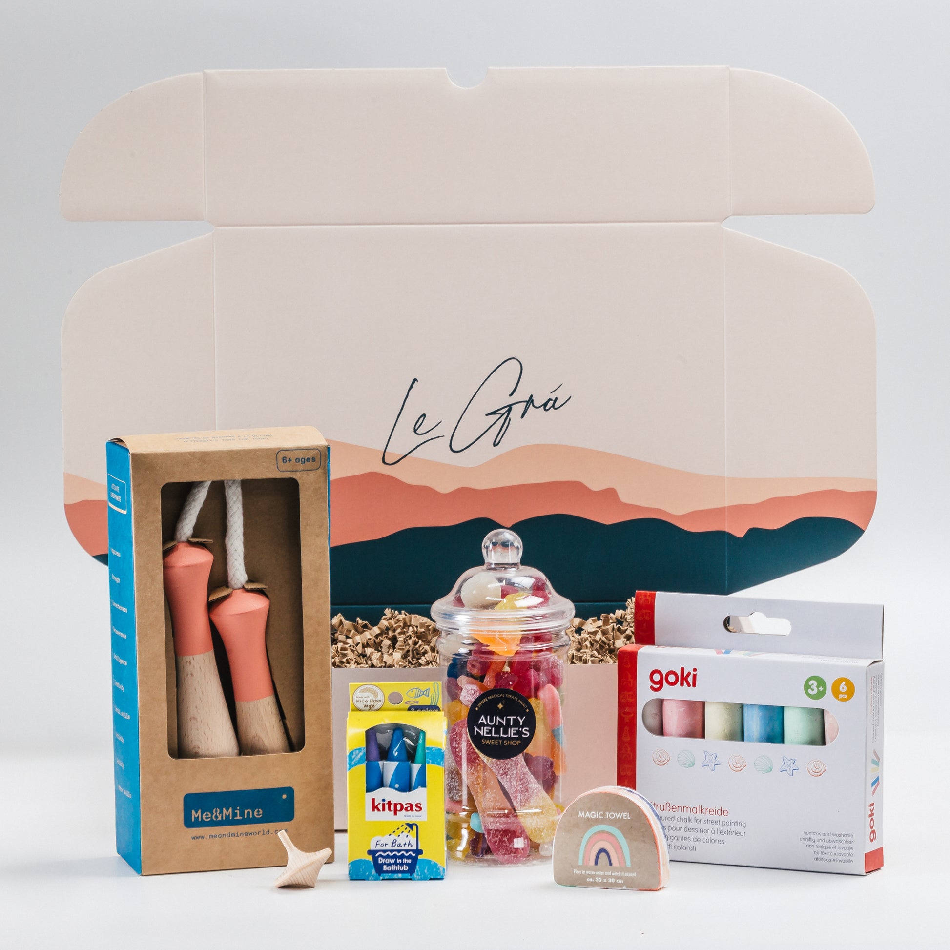 Full of fun and a little bit of self-care, our Kids Play & Pamper Box is made for active, creative little ones! With colourful chalk for outdoor masterpieces, a skipping rope for energetic play, vibrant markers for big imaginations, a magic expanding towel, and gentle kids soaps — this box has everything for a day of fun, mess, and mini pampering.